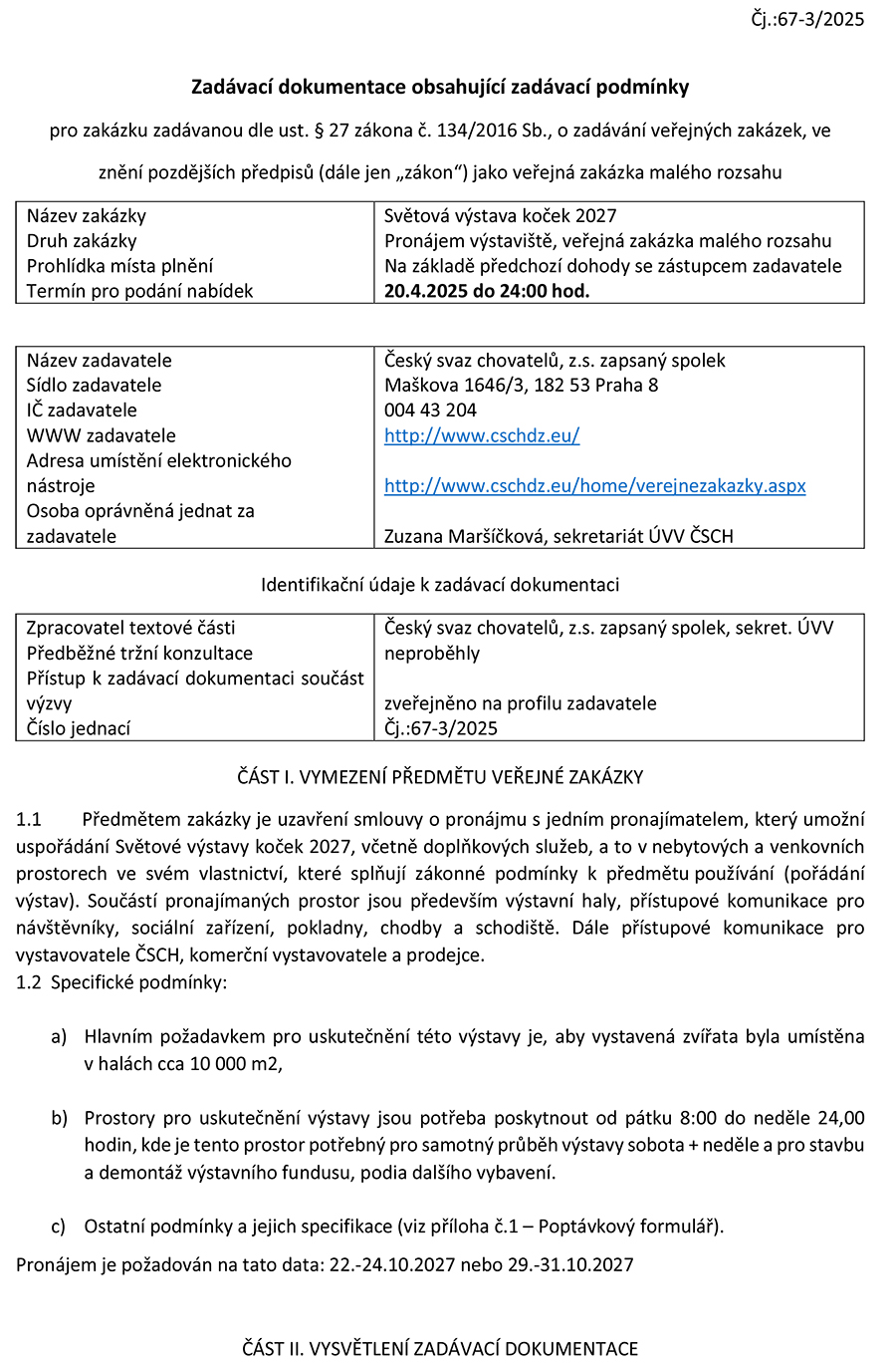 výběrové řízení ČSCH na prostory pro konání WS 2027:
